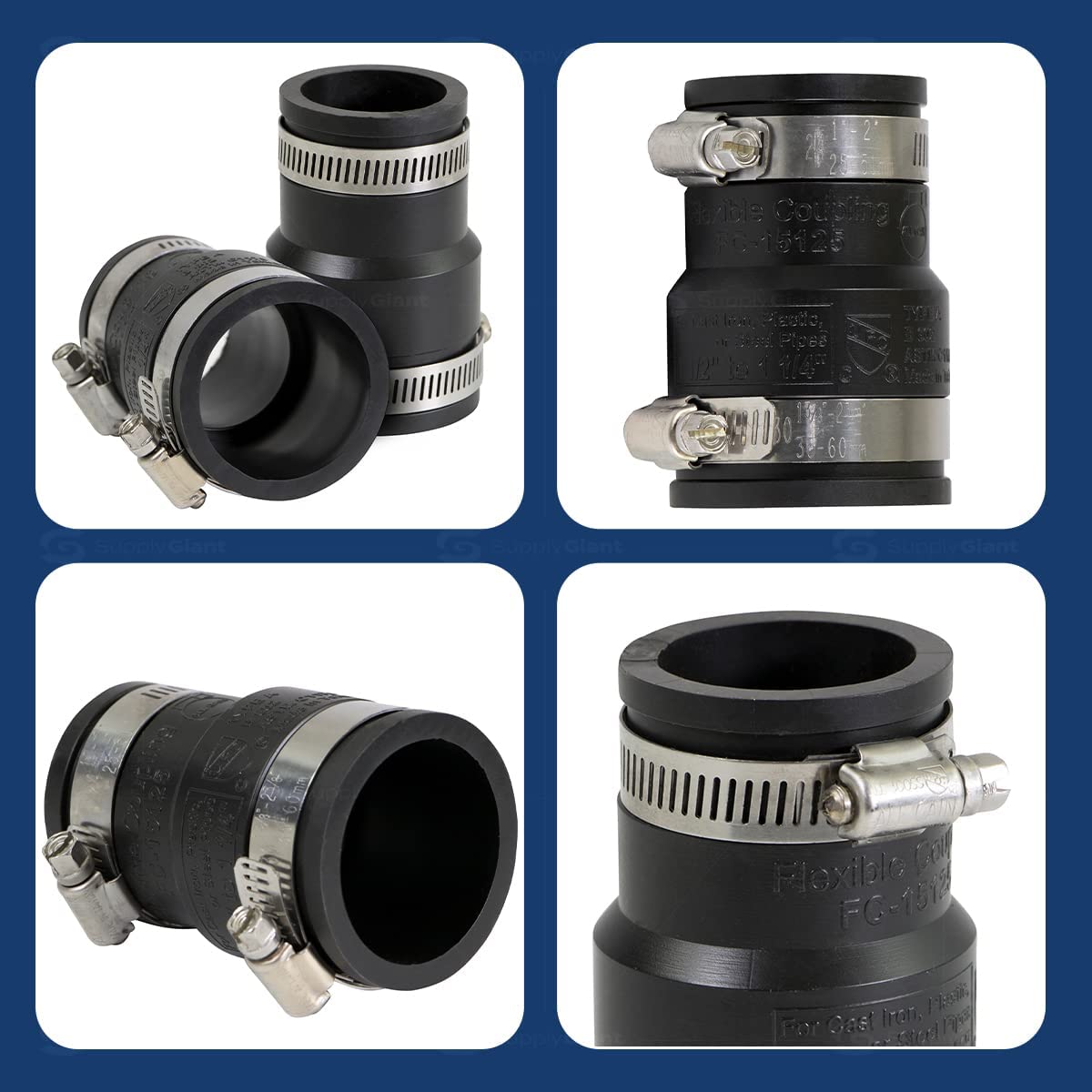 Supply Giant Flexible Kupplungen haben aufgrund ihrer Qualität und einfachen Installation eine breite Akzeptanz bei Kanalisations- und Sanitärunternehmern und Gemeinden gefunden. Supply Giant Rohrkupplungen und Adapter werden für alle Arten von hauseigenen und Kanalanschlüssen eingesetzt: Abfluss, Abfluss, Entlüftungsrohren, Haus-zu-Hauptreparaturen, Cut-Ins, Leiter, Dachabflüsse und Steiger-Reduzierer. Mit Tausenden von verschiedenen flexiblen Kupplungsarten hat Supply Giant die richtige Lösung für die meisten Anwendungen. Hergestellt aus robustem Elastomer-PVC sind die flexiblen Kupplungen stark, belastbar und unbeeinflusst von Bodenbedingungen. ⚠ California Proposition 65 Warnung: Dieses Produkt ist im Staat Kalifornien bekannt, um Krebs oder andere Fortpflanzungsschäden zu verursachen. Weitere Informationen finden Sie unter www.p65warnings.ca.gov. ⚠ California Proposition 65 Warnung: Dieses Produkt ist im Staat Kalifornien bekannt, um Krebs oder andere Fortpflanzungsschäden zu verursachen. Weitere Informationen finden Sie unter www.p65warnings.ca.gov.