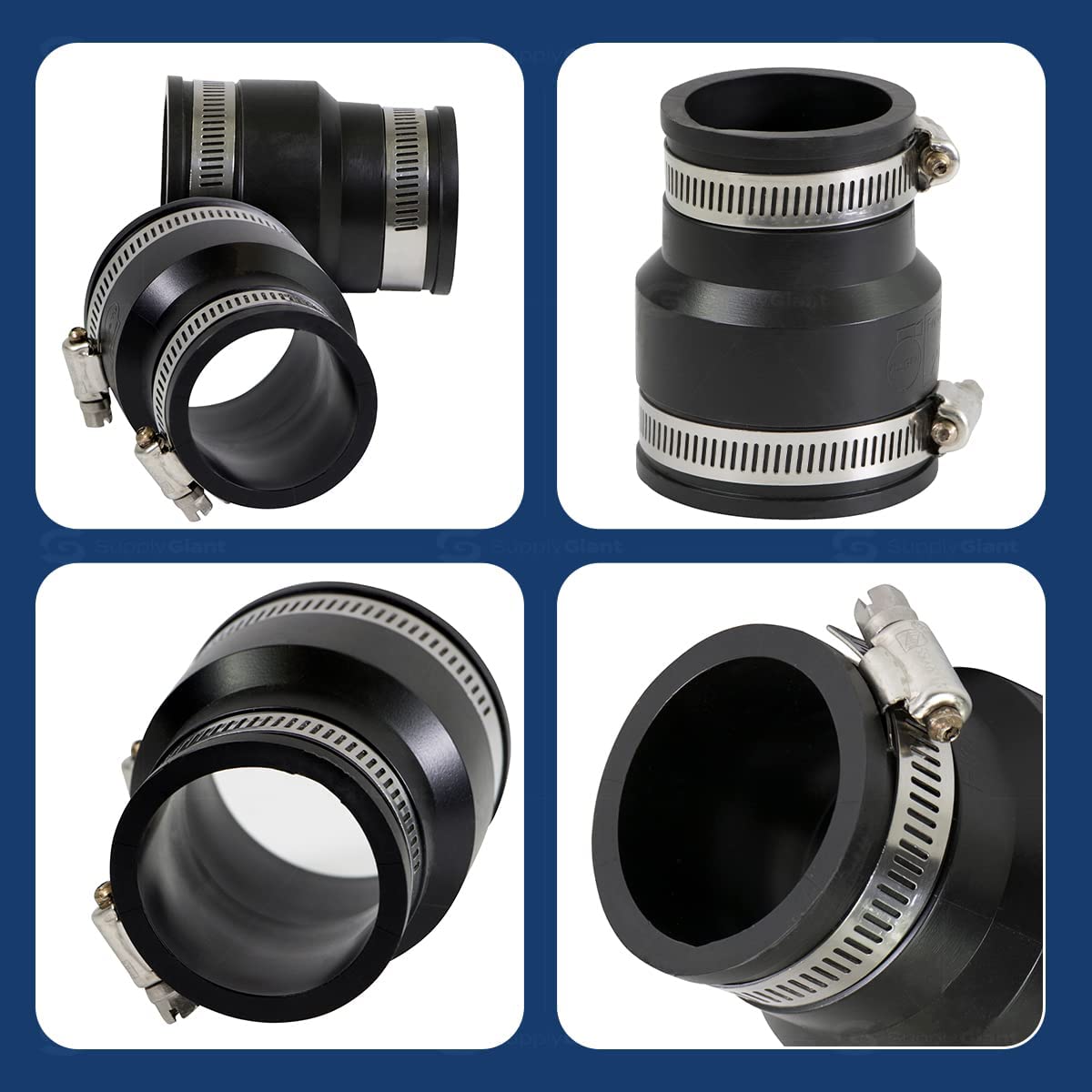 Os acoplamentos flexíveis da Supply Giant encontraram ampla aceitação entre empreiteiros de esgoto e encanamento e municípios devido à sua qualidade e facilidade de instalação. Os acoplamentos e adaptadores de tubos gigantes da Supply são usados para todos os tipos de conexões internas e de esgoto: drenagem, resíduos, tubulação de ventilação, casa para principal, reparos, cortes, condutor, drenos de teto e redutores. Fabricando milhares de diferentes tipos de acoplamento flexível, a Supply Giant tem a solução certa para a maioria das aplicações. Feito de cloreto de polivinila elastomérica resistente (PVC), os acoplamentos flexíveis são fortes, resilientes e não afetados por condições do solo.
