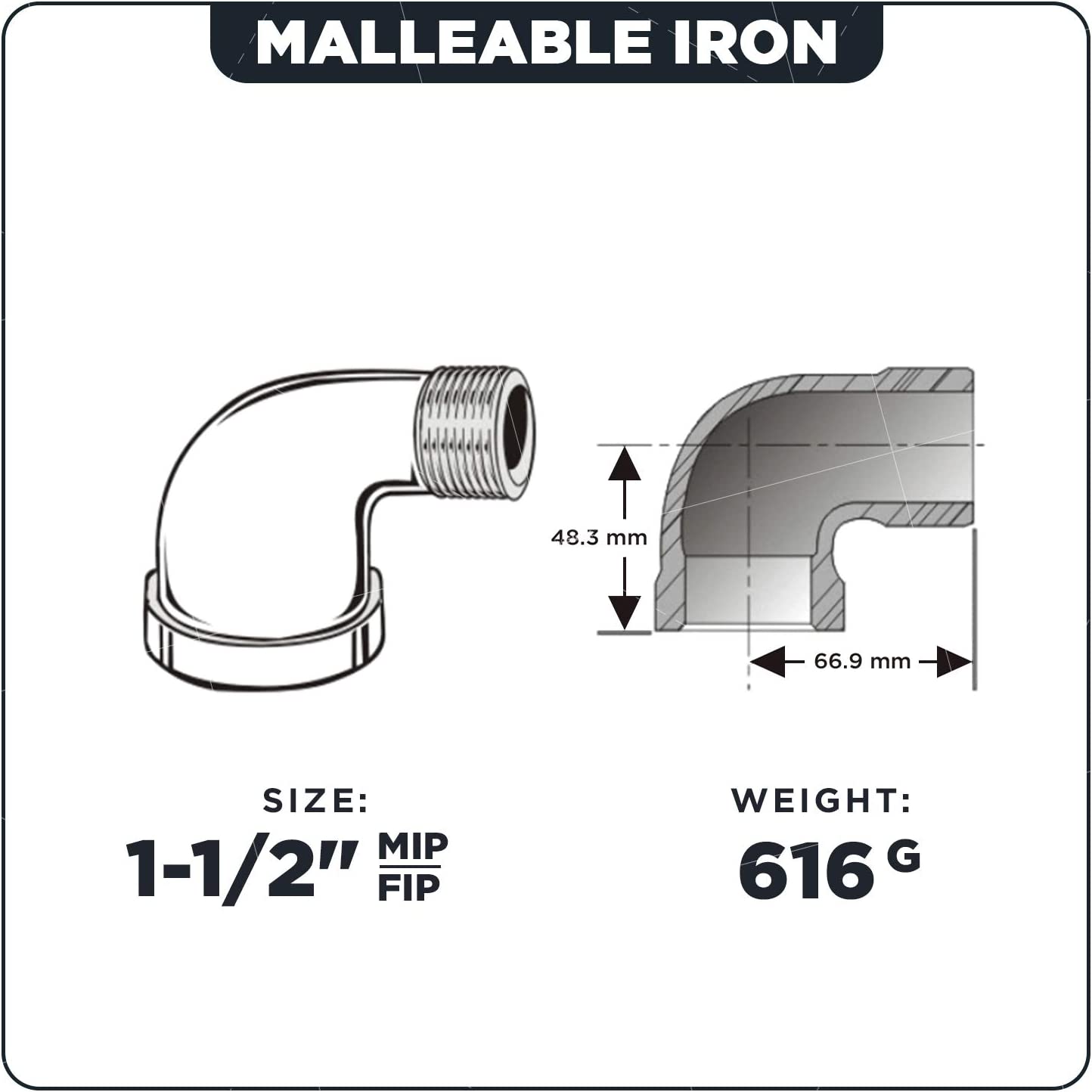 - 90 degree street elbow with 1-1/2" female to male threaded connects
