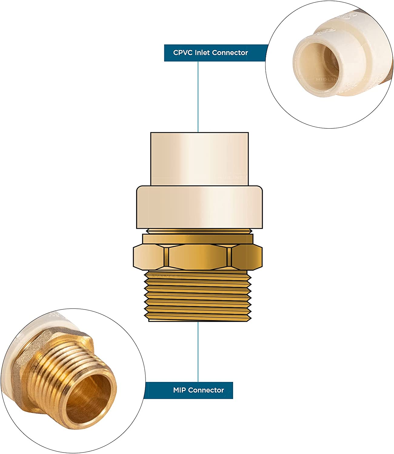 - Great for Joining CPVC and MIP Pipes Within Your Piping Systems