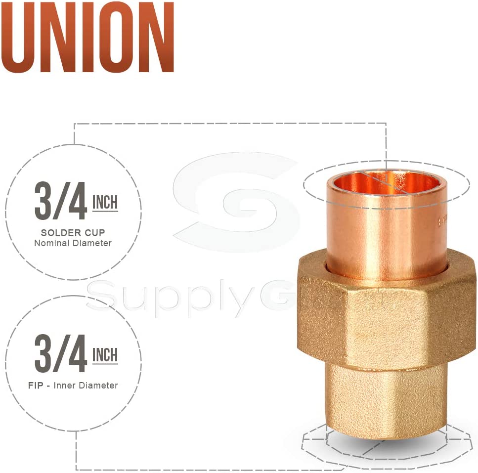 Supply Giant DDDV0034 3/4" Nominal Size Lead Free Straight Union with Sweat Sockets for Use with 7/8" OD Copper Pipe, 28