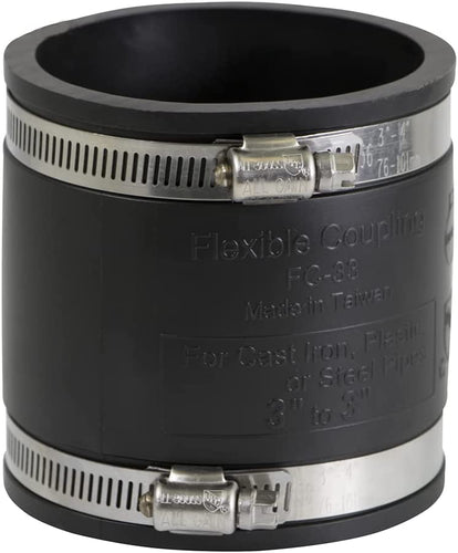 Supply Giant 6I48 Flexible PVC Coupling with Stainless Steel Clamps3", Black