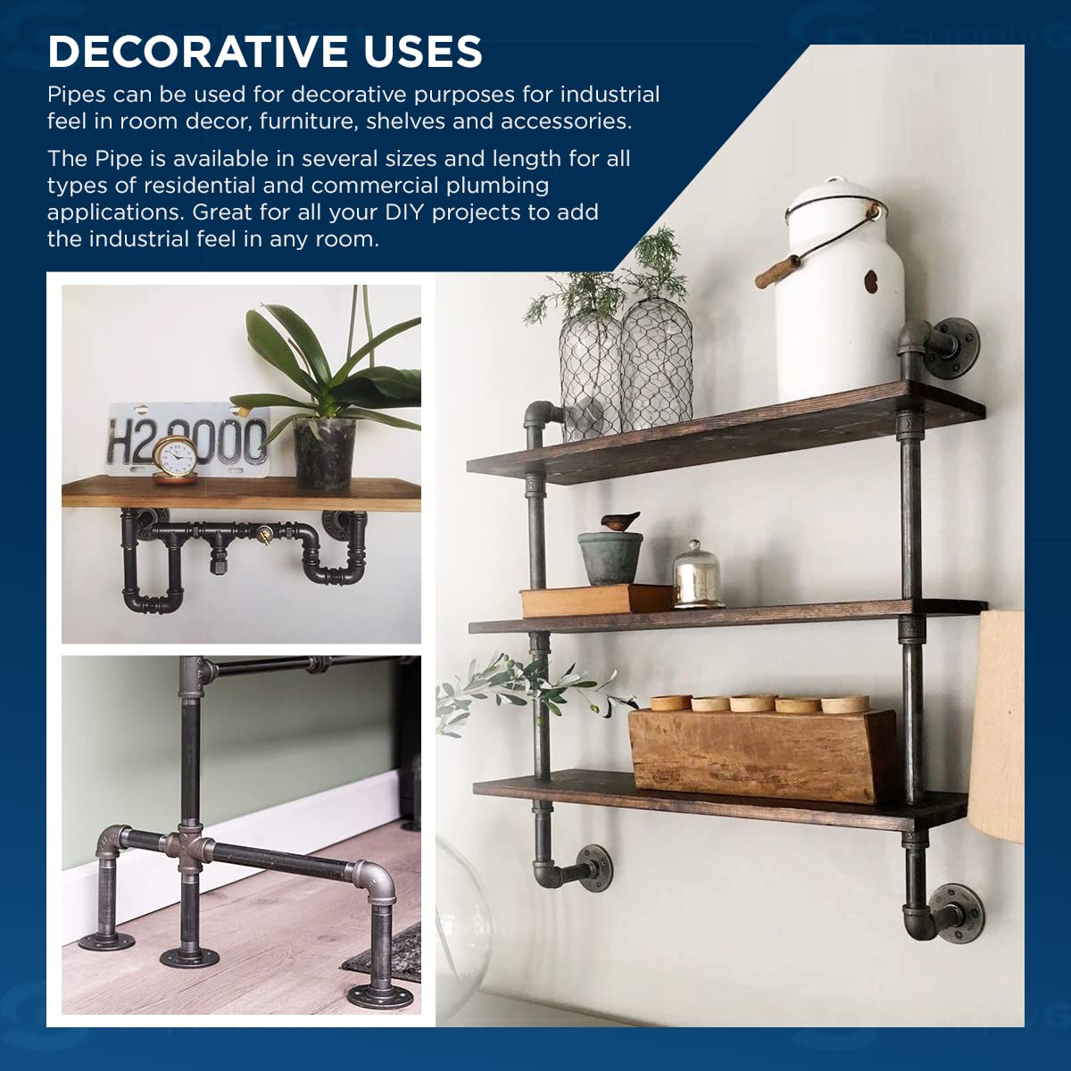 - DECORATIVE USES: pipes can be used for decorative purposes for industrial feel in room décor, furniture shelves and accessories