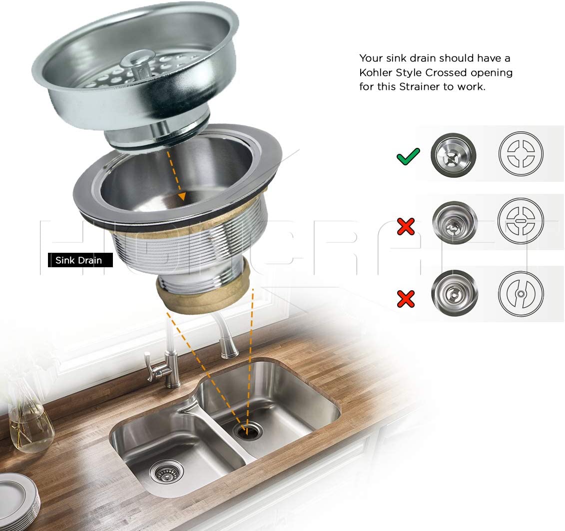 Highcraft 97353 Kitchen Sink Basket Strainer Replacement for Kohler Style Drains Stainless Spring Steel Stopper